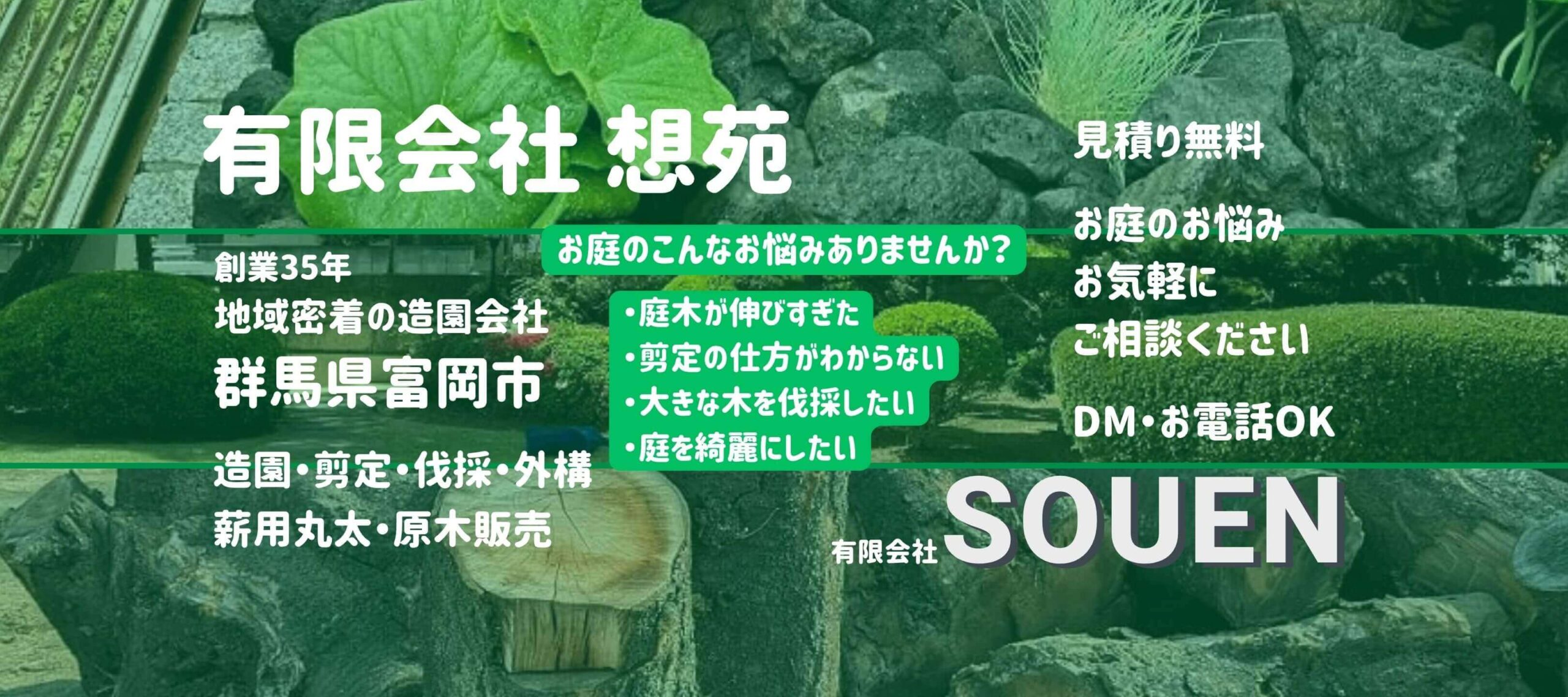 造園・剪定・伐採・外構工事・お庭のお手入れ・薪用丸太/原木販売 など、
