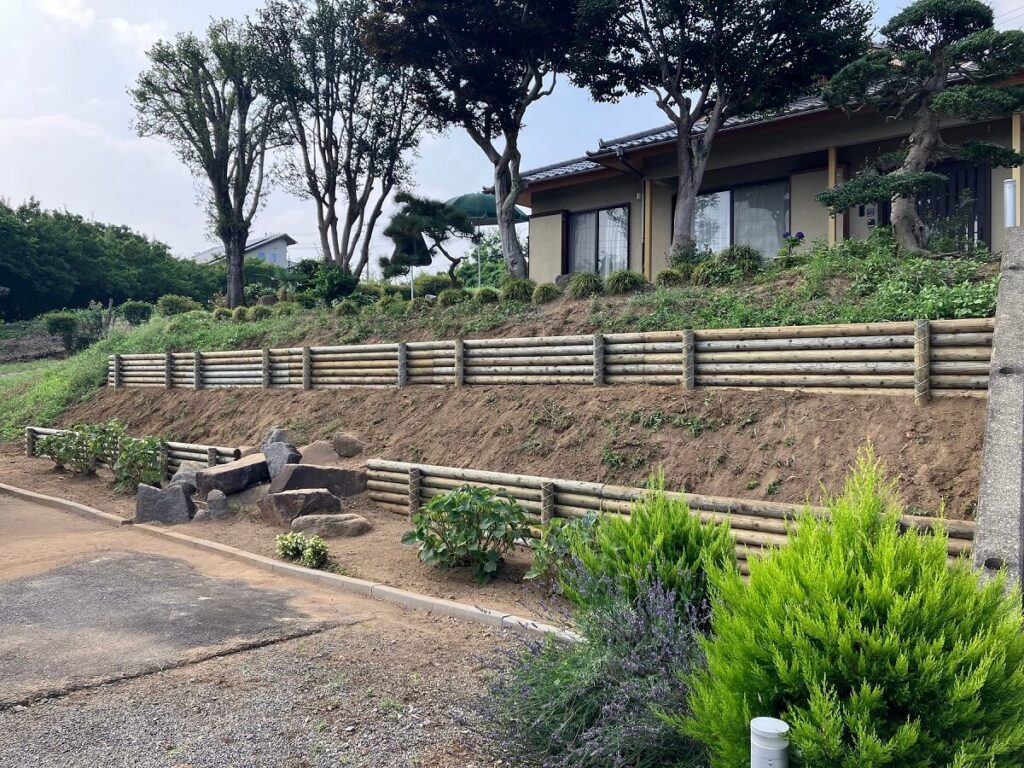 丸太木棚作り 2025 12/17 施工事例 2025年12月17日2025年12月18日 高崎市 M様邸 から依頼れた工事です。法面の土が雨で流れ出てしまうため、何か対策をして欲しいと、相談がありました。土の流出を防ぐため、杉丸太や杭で木柵を作りました。丸太がとてもしっくりきて、見映えも良く仕上がりました。お客様からもお褒めの言葉を頂きました。お役に立てて良かったです。 施工前 ⇩ 施工後 施工事例 よかったらシェアしてね! URLをコピーしました! URLをコピーしました!